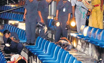 Defending Indian Identity-The Challenge of Terror. The tragic scene at Lumbini Amusement Park, Hyderabad, India on August 25, 2007 (Hyderabad Bombings).