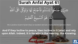 GLORIOUS QURAN – SURAH VIII – SPOILS OF WAR, VERSE 61: “AND IF THEY INCLINE TO PEACE, INCLINE THOU ALSO TO IT, AND TRUST IN ALLAH. LO! HE IS THE HEARER, THE KNOWER.”