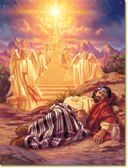 Jacob received his older brother’s blessing from his father and then flees to Laban in Haran to escape from his brother’s anger. His dream at Bethel is narrated in Genesis, chapter 24, verses 10-17: