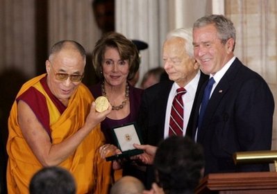 United States Congress honored His Holiness Dalai Lama with a Gold Medal during a ceremony in Washington,DC in 2007. President George W Bush, US Speaker of the House Nancy Pelosi, and US Senator Robert C Byrd are seen in the photo. Senator Byrd, the longest-serving member of the US Congress has died at the age of 92 after almost six decades in office. America has lost a voice of Principle and Reason. It is a time for us to reflect upon the Problem of Tibet.