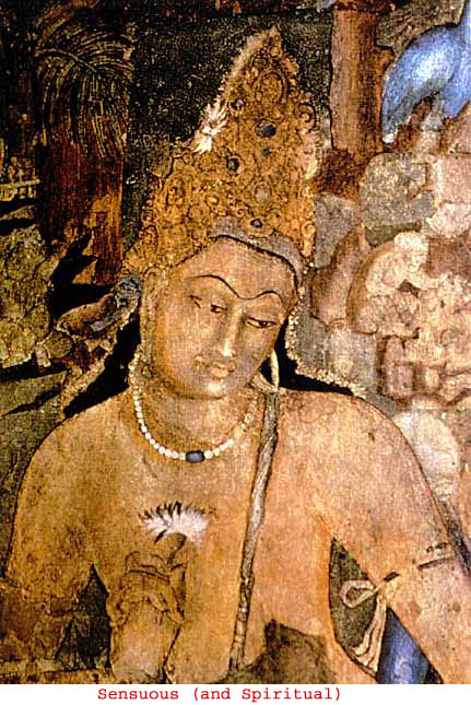 Ajanta Caves near Aurangabad, Maharashtra State, India, Fresco-type wall painting- Man's spiritual dimension describes man's humanity, moral nature, individuality, and Consciousness.