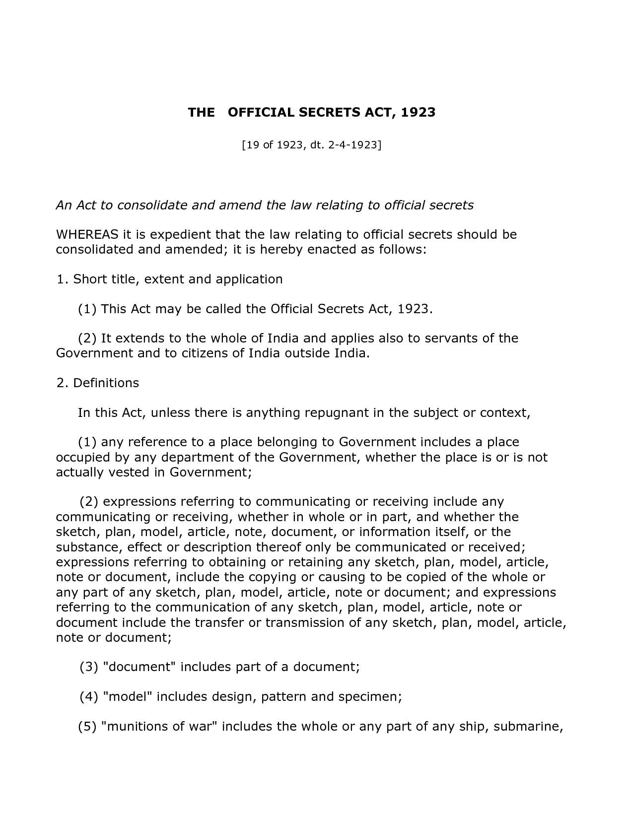 THE OFFICIAL SECRETS ACT OF 1923: