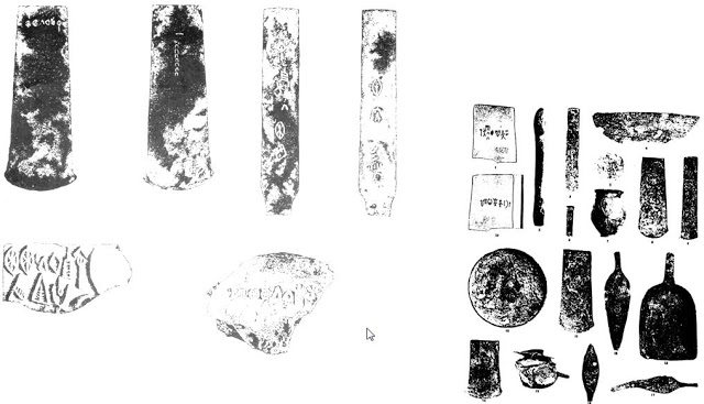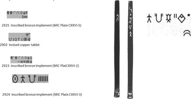 Source: Copper plates from Mohenjo-daro: an analysis of 46 tablet groups of 218 copper tablet inscriptions (After Parpola, 1994, fig 7.14)A list of Inscribed metal tools