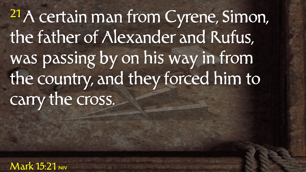 But, it is the alien who carried the burden of the cross as Jesus slowly moved to reach His earthly destination. Jesus was spared from the burden of carrying the cross on the day of crucifixion.
