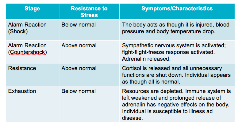 After sudden exposure to stress stimulus, in times of anger, fright, fight, and flight, the initial ‘Alarm Reaction’ produces epinephrine that increases the heart rate and blood pressure. When the stress continues, the adrenals are again stimulated via the hypothalamus-pituitary axis and release hormones such as cortisol which is important for providing glucose, a source of energy for the body. If the stress further continues, body tends to develop resistance against prolonged stimuli. If the stress stimuli are very aggressive and are sustained over a very long period, the ‘General Adaptation’ mechanism of the body could fail, a ‘Stage of Exhaustion’ may follow and the individual could be overwhelmed. Pre-existent resistance against stress reduces the requirement of immediate response of an “Alarm Reaction.” Stress is reduced by pre-existing resistance. The defeat, imperfect production of resistance, or premature arrest of the process of its production gives rise to disease. Heredity, environment, physical and mental health, and social support detremine our ability to resist stress situations. The development of a well integrated personality to face life squarely determines the extent and quality of the resistance. By proper education and training, the threshold for physical and emotional stress could be increased.