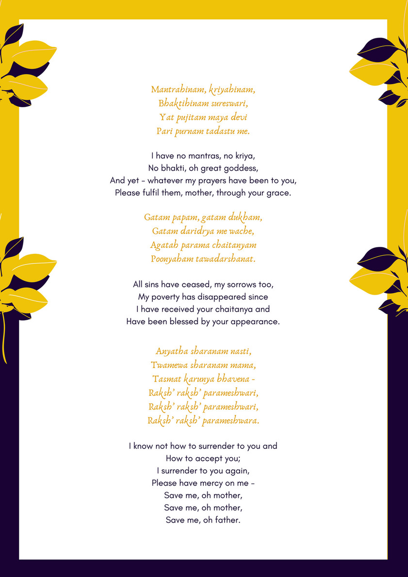 Tasmat karunya bhavena, kshamasva Parameshvara.