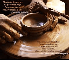 Saint Kabir lived in Benaras (Kasi, Varanasi), India during 15th century. His contributions to the Bhakti or Devotion and the Sufi movements in India are well known. Some of his poetry was incorporated into the ‘Guru Granth Sahib'(Adi Granth), the sacred book of Sikhs. In this holy book, Kabir’s hymns appear at the head of ‘Bhagat Bani’. Kabir pointed to the inward life of the mind as the source of contact with the Divine. Kabir grew up as a Muslim and his family was poor and he belonged to a community whose traditional occupation was that of weavers. In my analysis, Kabir was unaware of the preachings of the Books of The Old Testament of Bible. This unawareness becomes apparent in his concept of Clay and Potter.