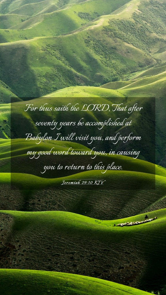 Book of Jeremiah, chapter 29, verse 10, the LORD says, “when seventy years are completed for Babylon, I will come to you and fulfill my gracious promise to bring you back to this place…”