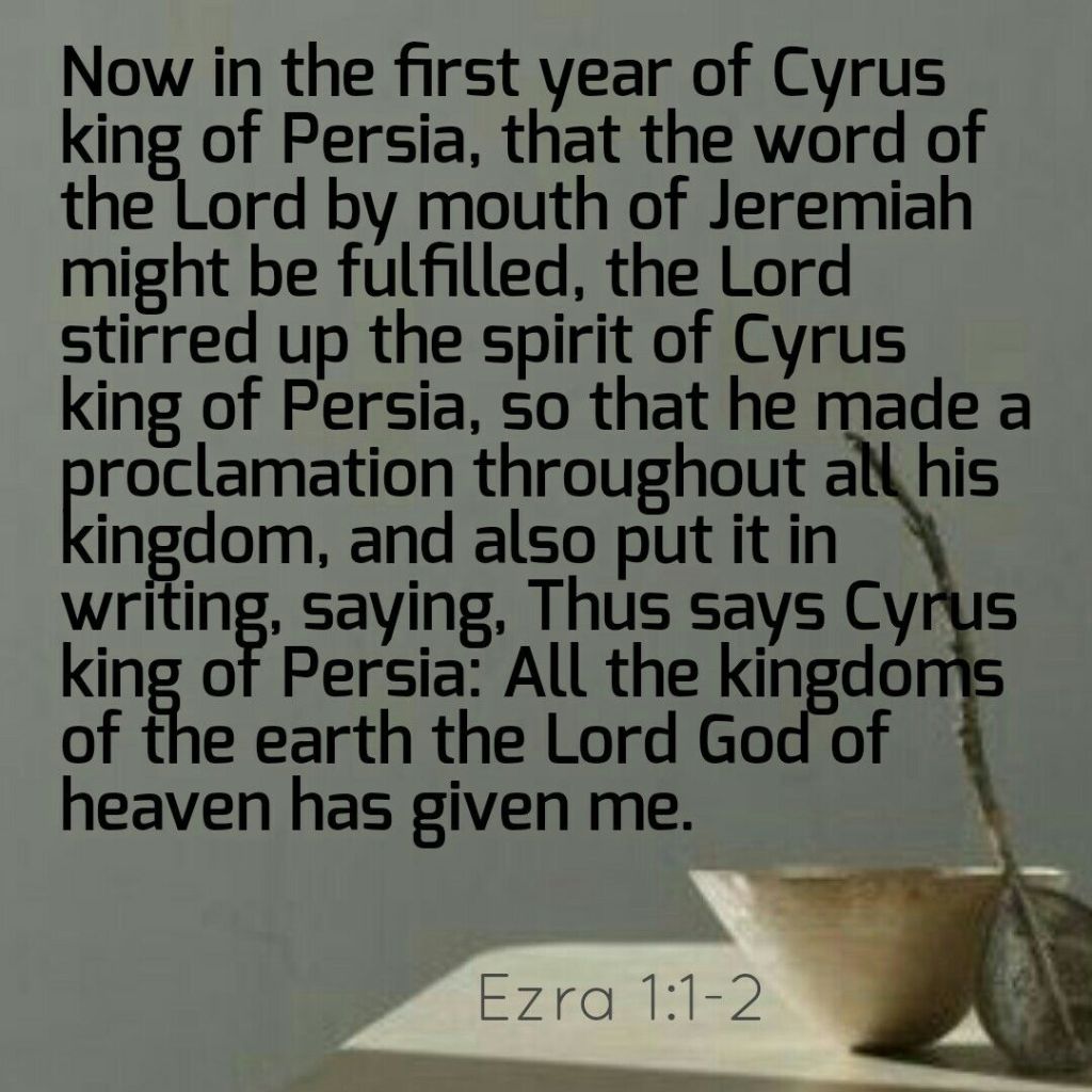 “The LORD, the God of heaven, has given me all the kingdoms of the earth and he has appointed me to build a temple for Him at Jerusalem in Judah. Anyone of His people among you- may his God be with him, and let him go up to Jerusalem in Judah and build the temple of the LORD, the God of Israel, the God who is in Jerusalem.”