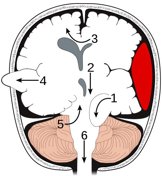 Aerial Fireworks Display and Tragedy at Thapar Stadium: The complications of head injury or trauma are brain edema or swelling and brain herniation when brain tissue gets displaced from its usual position within the cranial cavity. Six types of brain herniation can occur: 1. Uncal herniation, 2. Central or Transtentorial herniation, 3. Cingulate or Subfalcine herniation, 4. Transcalvarial or Infratentorial herniation, 5. Upward Cerebellar or Upward Transtentorial herniation, and 6. Tonsillar or downward Cerebellar herniation. The compression of Brainstem causes Brain Death due to Cardiac and Pulmonary Arrest.
