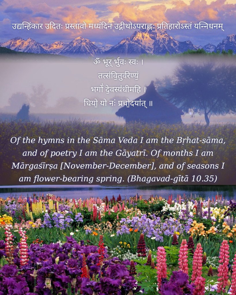 The Divine Song called Bhagavad Gita, Chapter X, ‘The Infinite Glories of the Ultimate Truth’- ‘Vibhuti Vistara Yoga’, describes LORD God Creator’s Infinite Divine Attributes. In verse 35, Lord Krishna describes Himself as The Lord of Spring Season – The Season of Flowers: “Rtunam Kusumakarah.”