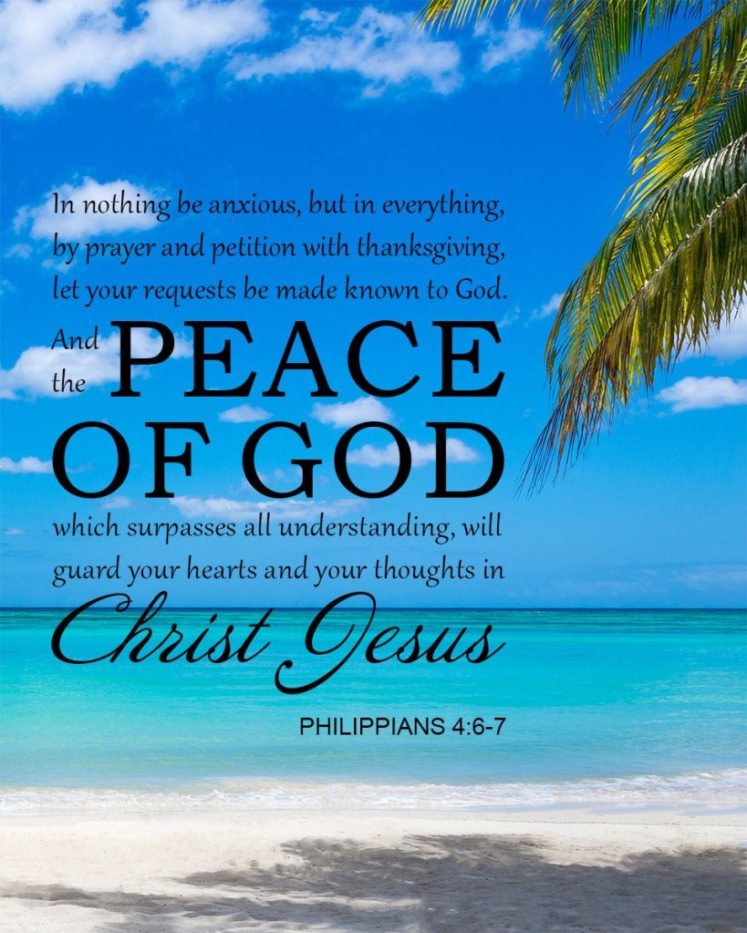 4. Rejoice in the Lord always. I will say it again: Rejoice! Let your gentleness be evident to all. The Lord is near. Do not be anxious about anything, but in everything, by prayer and petition, with thanksgiving, present your requests to God. And the peace of God, which transcends all understanding, will guard your hearts and your minds in Christ Jesus. (PHILIPPIANS4:4-7)