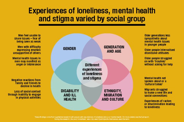 Feeling lonely can have a negative impact on mental health, especially if these feelings have lasted a long time. Some research suggests that loneliness is associated with an increased risk of certain mental health problems, including depression, anxiety, low self-esteem, sleep problems and increased stress.