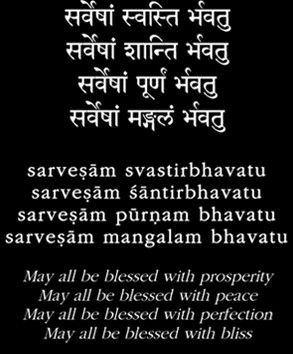 “Sarvesham Svastir Bhavatu”, Shanti Mantra in Sanskrit seeks the well-being of all humans, of all races, of all religions, of all cultures, and of all nations. It promotes finding of Peace, Harmony, and Tranquility in Man’s Living Experience.