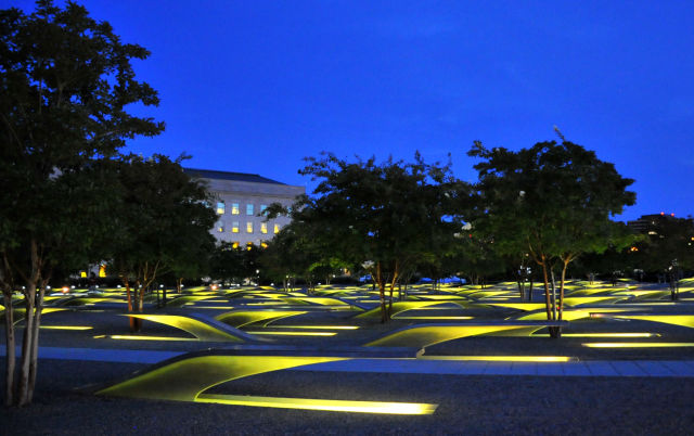 • The National 9/11 Pentagon Memorial located in Arlington, Virginia, honors the loss of 184 people who died on September 11, 2001. Each victim’s age and location at the time of the attack are inscribed into the Memorial starting from the youngest victim, three-year-old Dana Falkenberg, to the oldest, John D. Yamnicky, 71, a Navy veteran, both of whom were aboard American Airlines Flight 77 that morning.