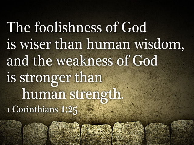 For since in the wisdom of God, the world through its wisdom did not know Him, God was pleased through the foolishness of what was preached to save those who believe. (The Holy Bible, The New Testament, 1 CORINTHIANS, Chapter 1, verses 19-21)