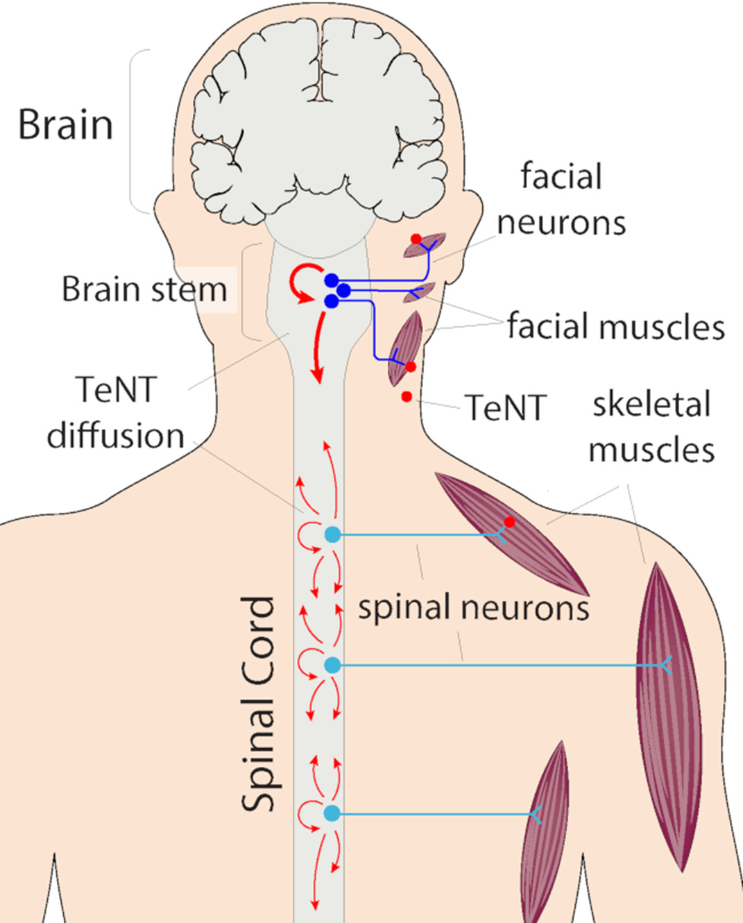 Reticular Formation is shown as a single ‘red’ bar in this figure. It consists of numerous Brain Stem nuclei. It is a network of nerve pathways and nuclei throughout the Brain Stem. A single neuron in this network may have synapses/connections with as many as 25,000 other neurons/nerve cells.