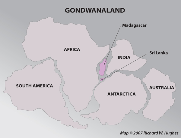 Over 250 million years ago, India, Africa, Australia, South America and Antarctica were all one continent called Pangea and is also known as Gondwana Land.