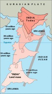 Over the next several million years, this giant southern continent proceeded to break up, forming the continents we know today. What ultimately formed the majestic Himalayas about 60 million years ago, was the rapid movement of India northward toward the continent of Euro Asia (Laurasia). India charged across the equator at rates up to 15 cm/year in the process closing an ocean named Tethys that separated fragments of Pangea. This ocean is entirely gone today.