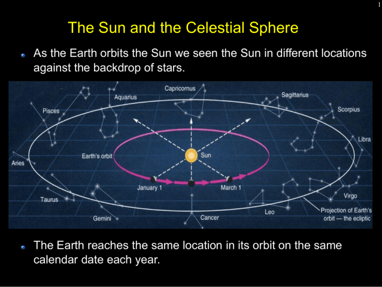 The Earth revolves around Sun and reaches the same location in its orbit on the same calendar date each year. On Friday, January 14, 2022, Earth reaches the location that an observer on Earth recognizes as the constellation of Capricorn when he sees Sun against the backdrop of stars in the Celestial Sphere. The man is blissfully unaware of Earth’s motion and merely perceives the apparent motion of Sun, Moon, and stars.