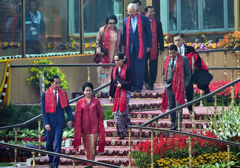 Indonesian President Joko Widodo, Malaysian Prime Minister Najib Razak, Prime Minister of Laos Thongloun Sisoulith and Cambodian Premier Hun Sen also watched the grand parade.