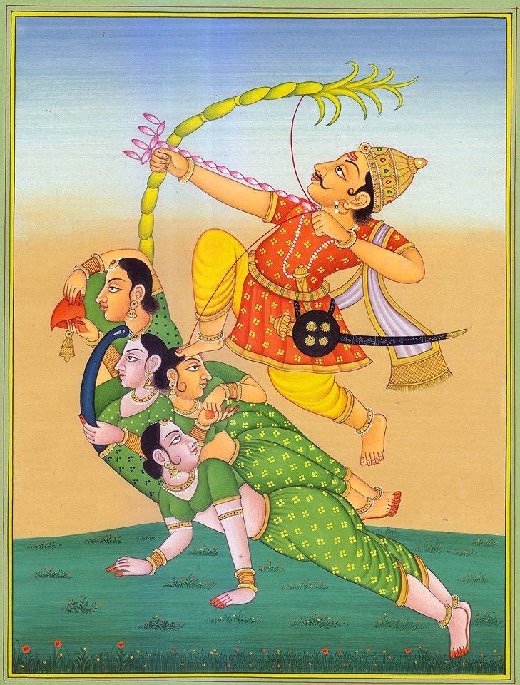 In Hindu Mythology, Lord Kamadeva or Cupid known as Lord Manmadha shot his magic arrow to facilitate romantic union of Lord Shiva and Goddess Parvati to save humanity from actions of evil power. But Kamadeva pays heavy price for stimulating Lord Shiva’s romantic interest while He meditated with absolute stillness of mind. Later, Lord Shiva restores Kamadeva’s life for he acted to help humanity to save them from their suffering.