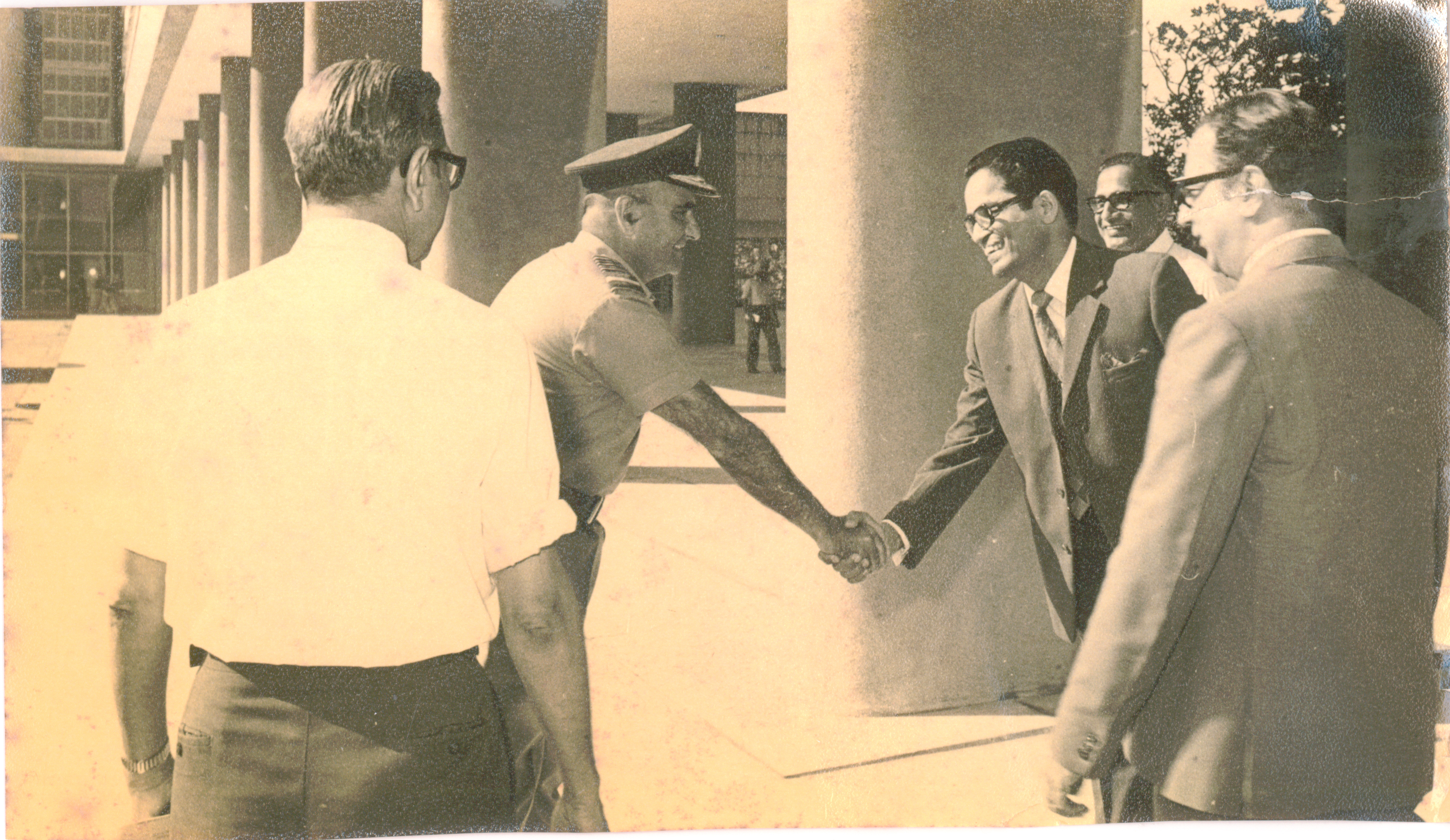 At TIFR, under Director Professor. B V Sreekantan, a team headed by Professor PVS Rao developed India’s Air Defence Data Handling System (Air Defence Ground Environment System or ADGES) under a plan initiated by Prime Minister Indira Gandhi who insisted upon India’s self-reliance in this aspect of using technology to defend India. In this monumental task, 50 scientists, engineers and 70 Air Force Officers worked together. While TIFR played the lead role, work was carried out by Bhabha Atomic Research Center (BARC), Air Force Simulation Center, Electronics Corporation of India Ltd (ECIL), Electronics and Radar Development Establishment (LRDE), and Tata Electric Companies (TEC). I am pleased to post some photo images of events at TIFR associated with the development of India’s Air Defence Ground Environment System or ADGES.