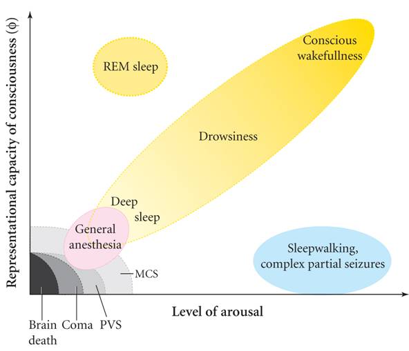The Self may think about the nature of consciousness, but Thinking and Consciousness are two distinct functions. Thinking and Consciousness are not one and the same. Consciousness functions to provide Awareness and it is not involved in mental activities such as Thinking. The Reticular Formation supports functions such as AROUSAL and it maintains wakefulness, alertness, and sleep. In the absence of this Brain Stem function, the Individual is not capable of generating thoughts, and feelings and would not be aware of what goes on inside the Individual, and what goes on outside the Individual.