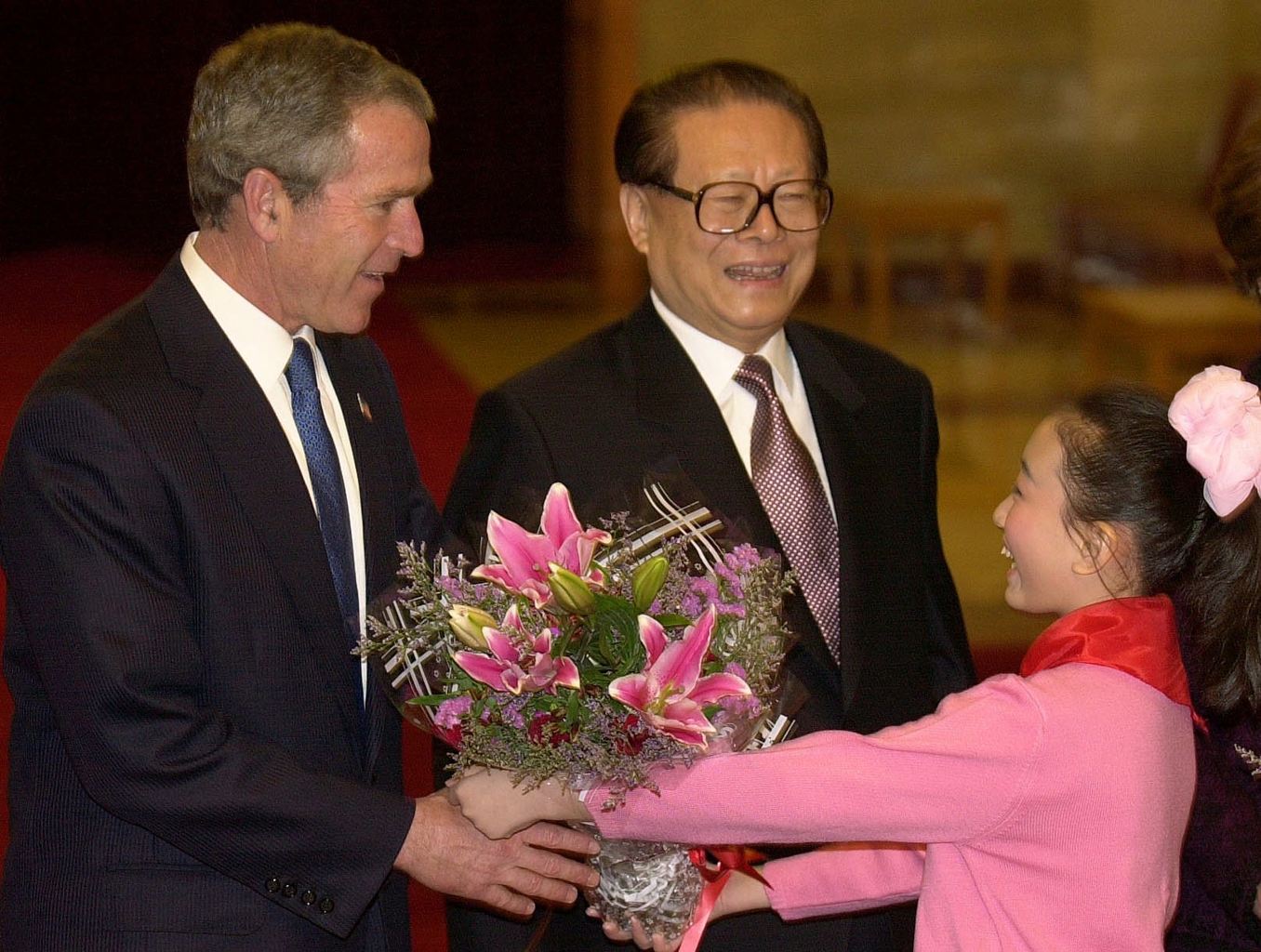Whole Dude-Whole Sin : February 21, 2002. President George W. Bush(43rd president of the US) with China’s Communist Party leader, President Jiang Zemin in Beijing. Communist China’s lack of respect for Human Rights should deter the United States from pursuing this path of self-destruction.